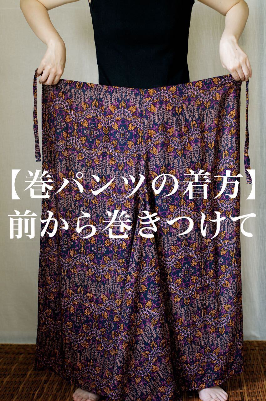 インドから上質なビスコースをこの一枚のために仕入れ、たっぷり布地を使って日本で一枚一枚その布の質に合わせて、丁寧に縫いあげております。ですので、紋の巻パンツは一点ものです。