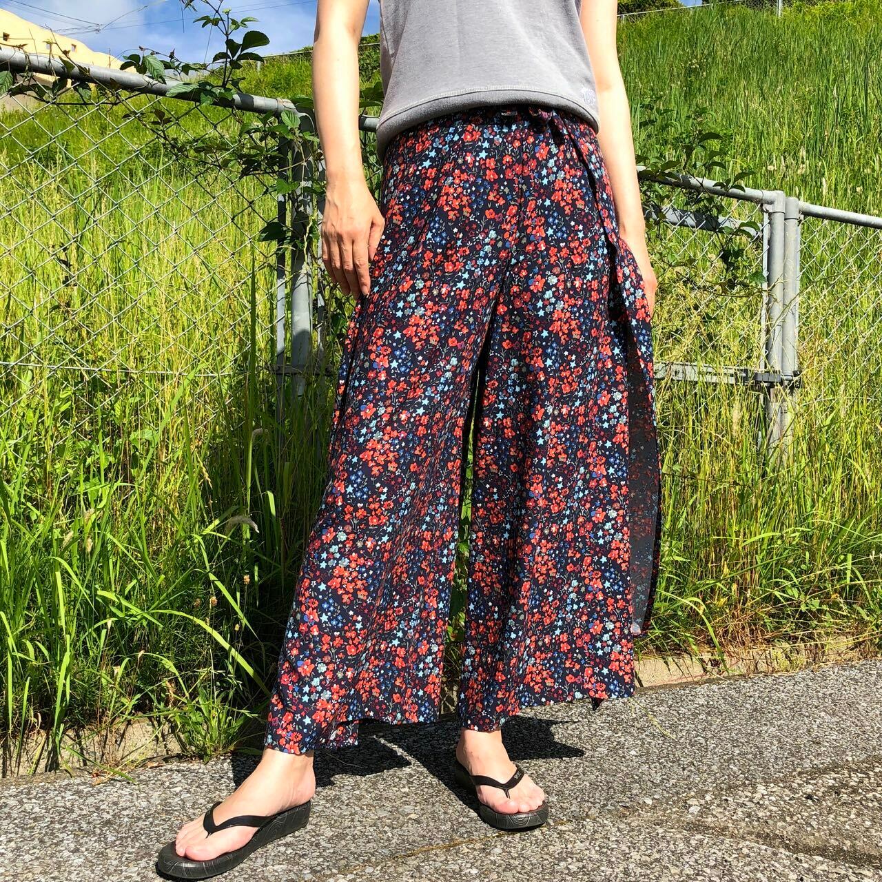 風をまとう紋の巻きパンツは、暑い夏でもひらひらさらさら。