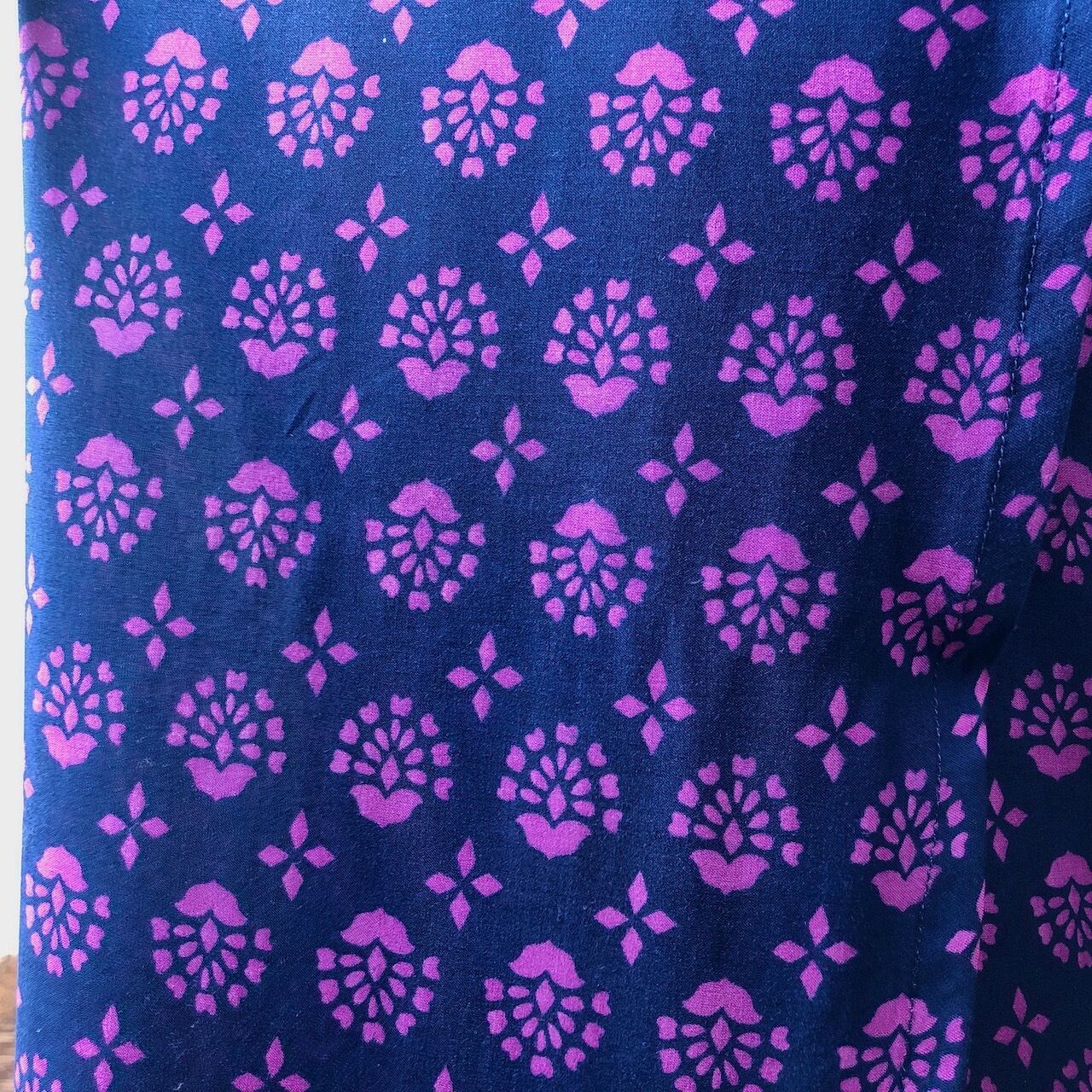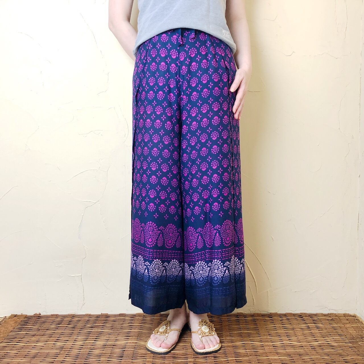 紋の巻パンツはインドから上質なビスコースを、この一枚のために仕入れ、たっぷり布地を使って日本で一枚一枚その布の質に合わせて丁寧に縫いあげた一点ものです。