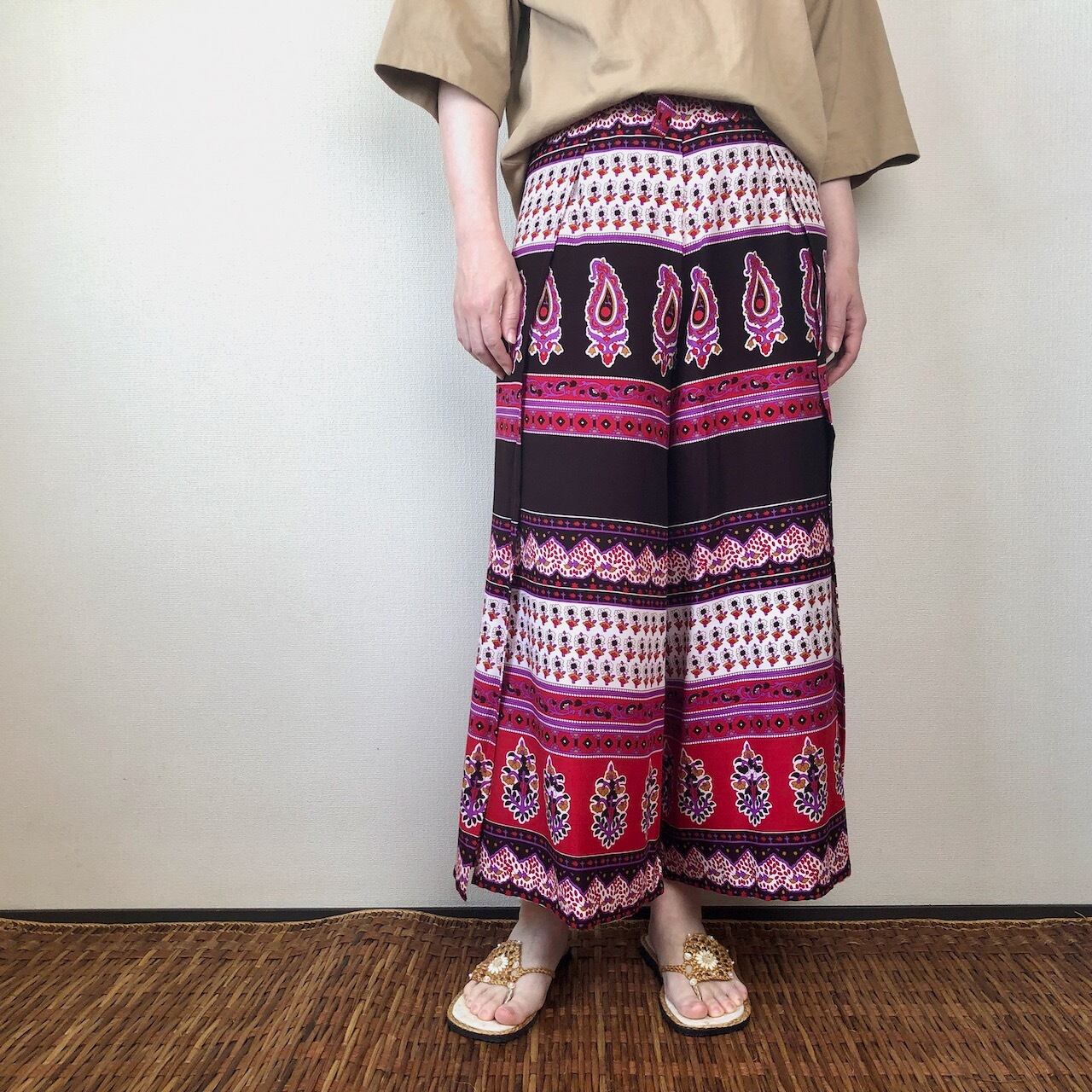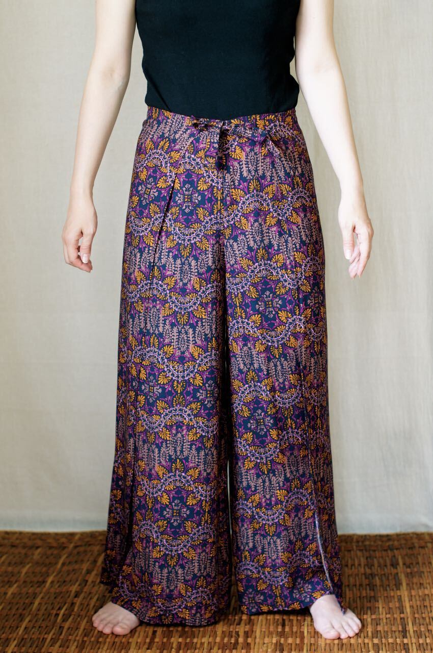 紋の巻パンツはインドから上質なビスコースを、この一枚のために仕入れ、たっぷり布地を使って日本で一枚一枚その布の質に合わせて丁寧に縫いあげた一点ものです。