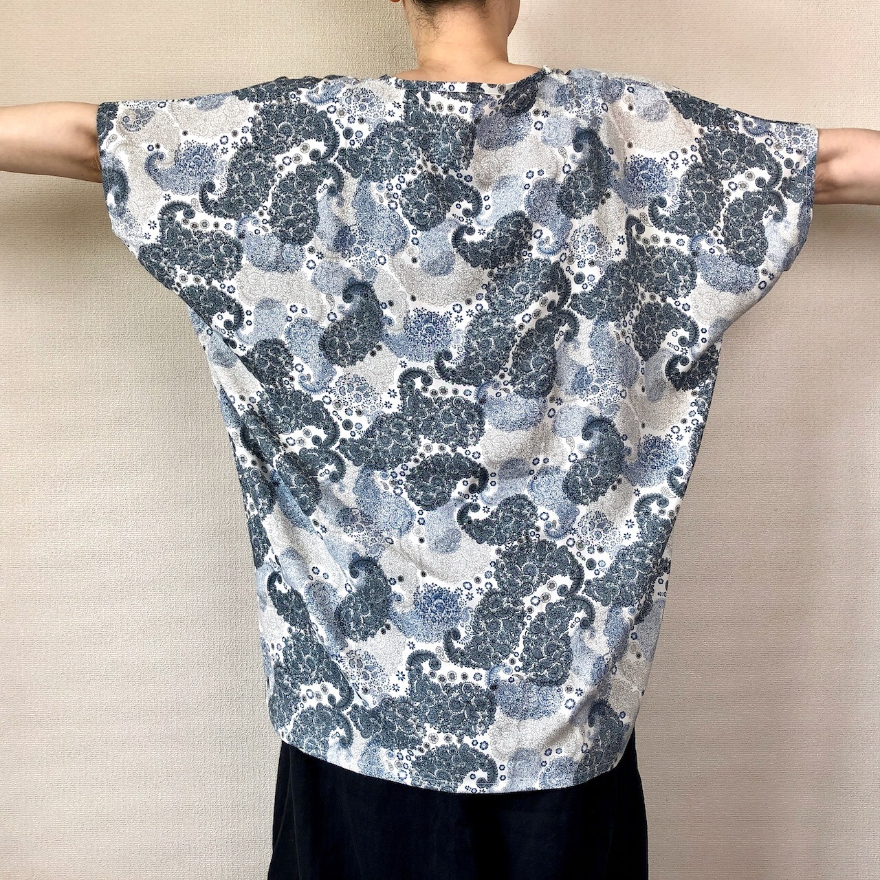 さらさらの肌触りのプルオーバー、「さらぷる」は、柔らかくさらっと涼しいビスコースで作っています。ビッグシルエットで袖から裾からの風通しが気持ちの良いデザインです。